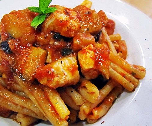 Caserecce Pesce Spada Pomodorino,Mentuccia & Melenzane € 15.00