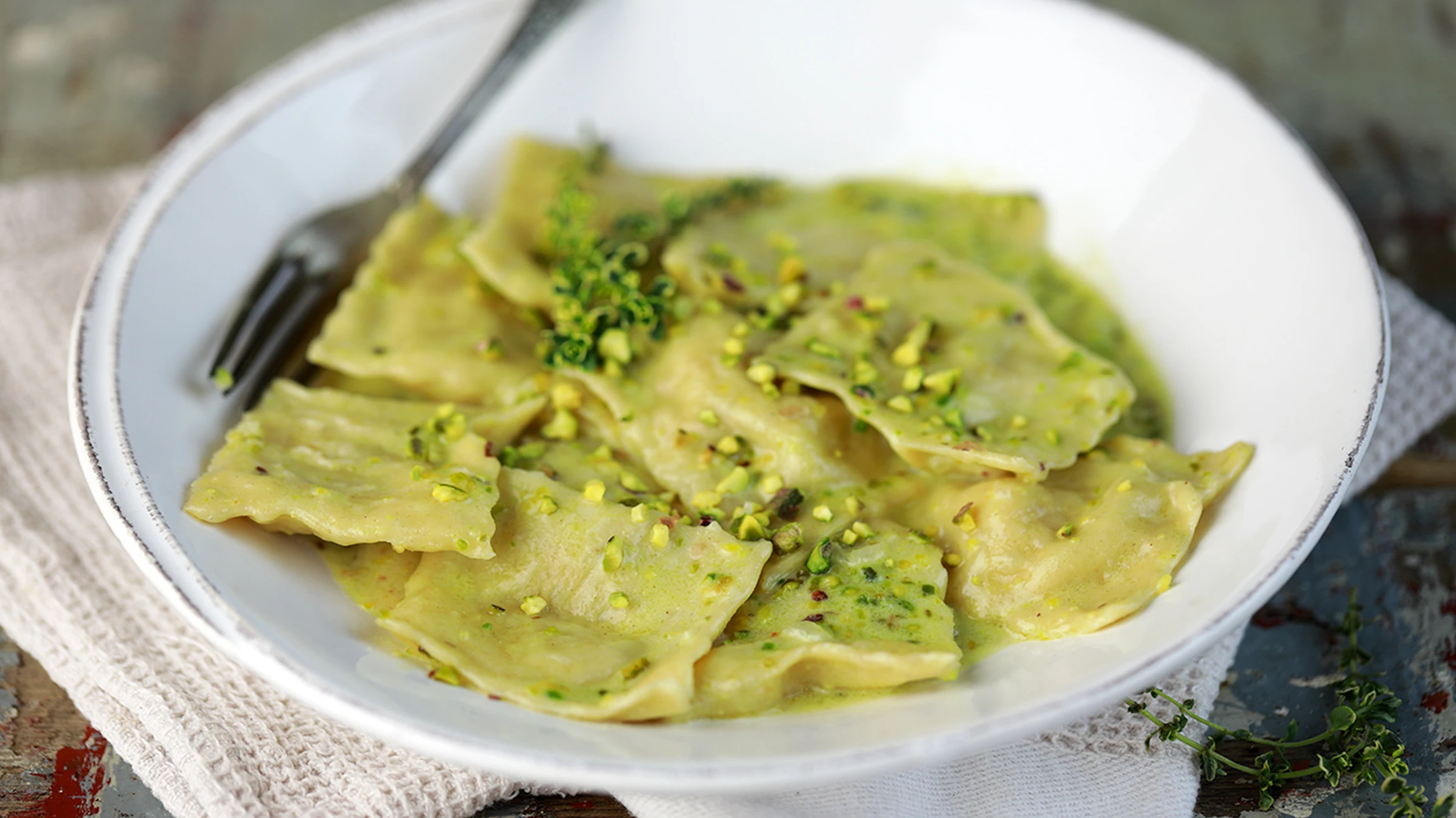 Ravioli con Cernia alla Crema di Pistacchio
